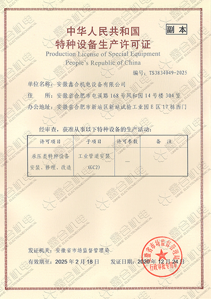 目前我公司具有建筑機(jī)電安裝工程專業(yè)承包一級(jí)資質(zhì)、總承包二級(jí)、GC2壓力管道設(shè)計(jì)、施工資質(zhì)?,F(xiàn)有高級(jí)工程師5名、高級(jí)技師55名、工程師22名、助工25名、技術(shù)員22名、各類專業(yè)技師50多名,強(qiáng)大的技術(shù)力量及精良的施工隊(duì)伍,為客戶提供全方位服務(wù)。 公司本著“一切為了用戶”的經(jīng)營(yíng)理念,“以品質(zhì)求生存、以誠(chéng)信贏市場(chǎng)、以管理促發(fā)展”為要求,努力為廣大客戶提供專業(yè),優(yōu)質(zhì)、高效的服務(wù)。